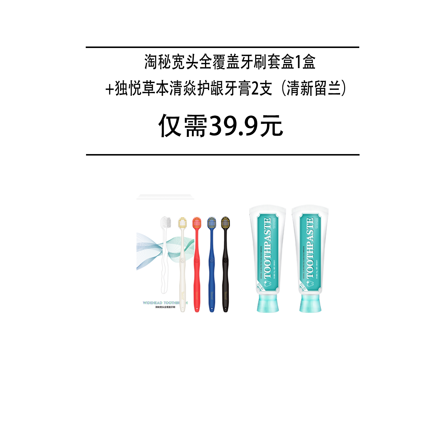 淘秘宽头全覆盖牙刷套盒1盒+独悦草本清焱护龈牙膏2支(清新留兰)