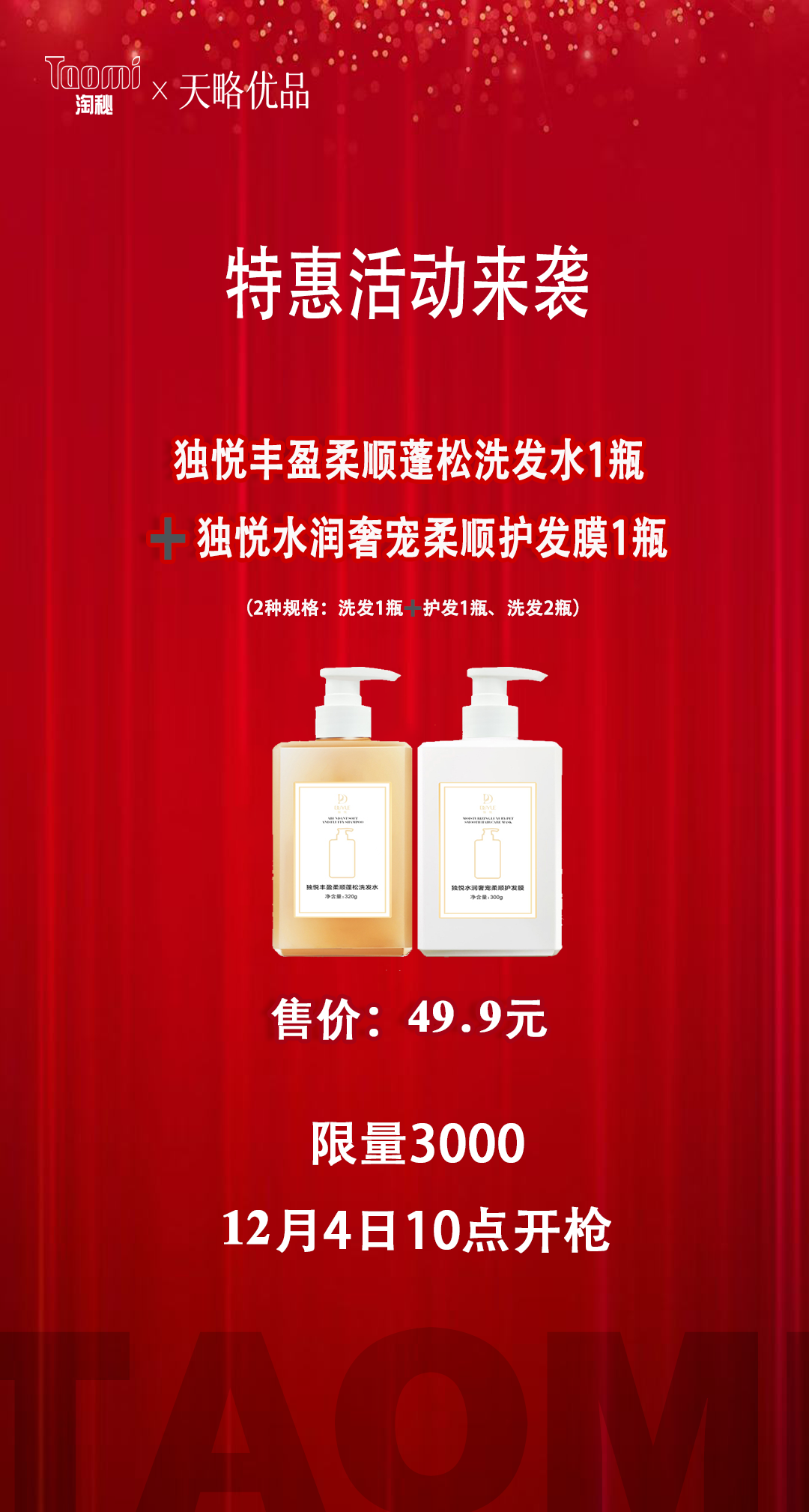 商品简介:洗发水1瓶➕护发膜1瓶/洗发水2瓶