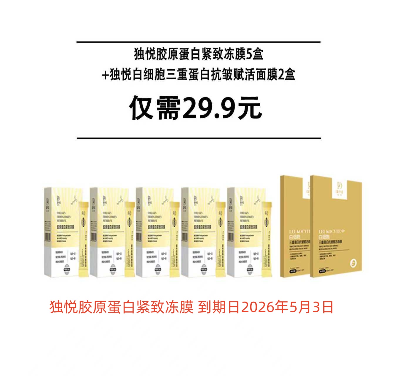 独悦胶原蛋白紧致冻膜5盒+独悦白细胞三重蛋白抗皱赋活面膜2盒