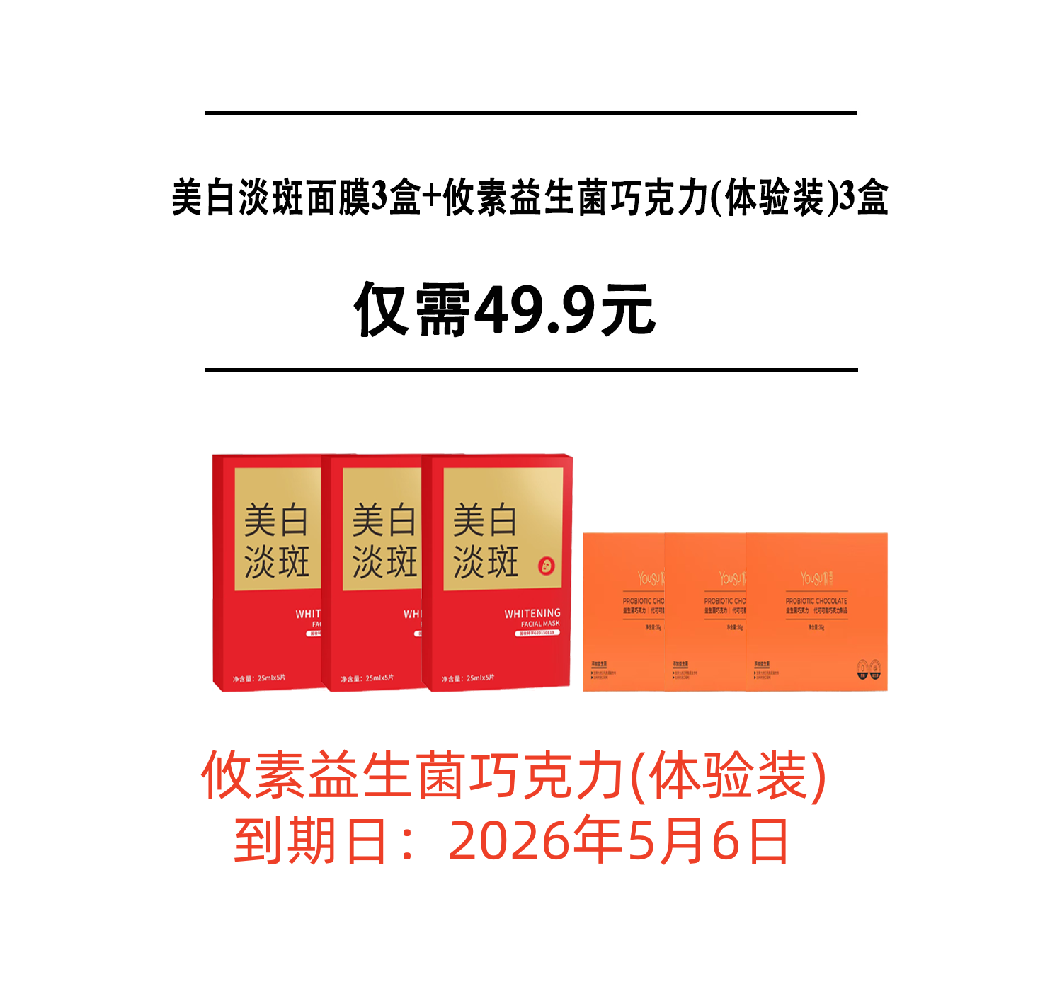 XOdo美白补水保湿面膜3盒+攸素益生菌巧克力(体验装)3盒